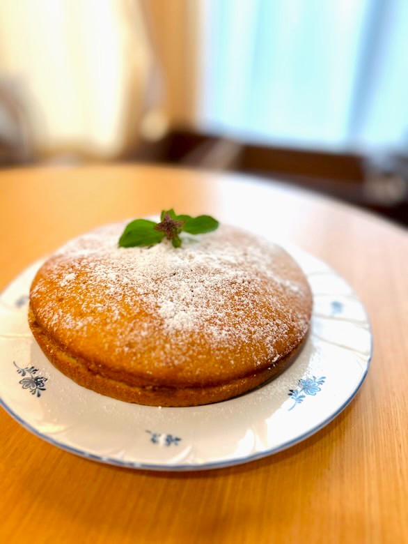 コーディアルを乗せた後、早めに切り分けると、コーディアルの奥深い味を愉しめる。時間が経つと生地の中にしっとり溶け込む味わいとなり、それもまた美味しい。